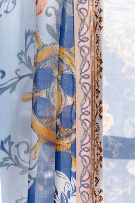 Agua Bendita MS Long Tunic blue flowers DEBRA KAI