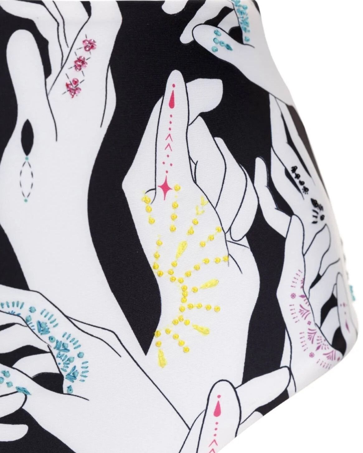 Agua Bendita Two Piece Swimsuit black and white embroidery