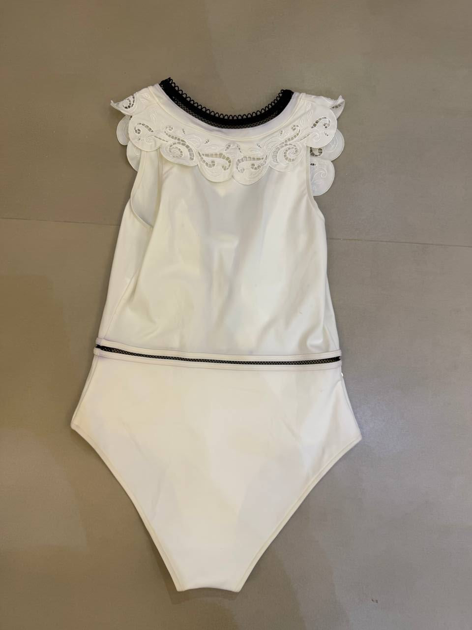 Elise Garreau Swimsuit White One Piece Off Shoulder