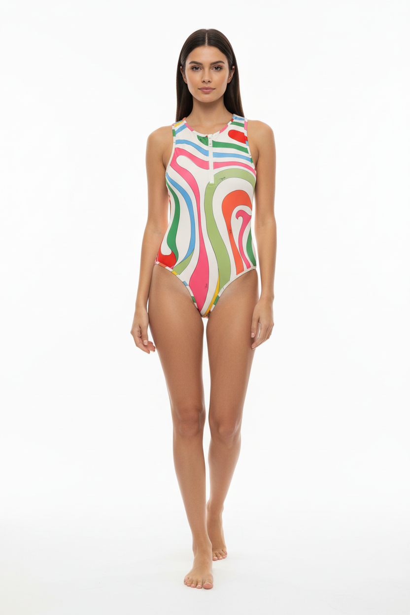 Immerse her in Italian luxury with the Emilio Pucci Girl’s Marmo Print Swimsuit, an elegant and playful one-piece designed for stylish young fashion lovers. Featuring Pucci’s signature Marmo marble-inspired print, this swimsuit brings vibrant, artistic flair to beach days, poolside afternoons, and resort escapes. Crafted from premium Lycra fabric, it ensures superior stretch, comfort, and shape retention — perfect for active days in the sun.
