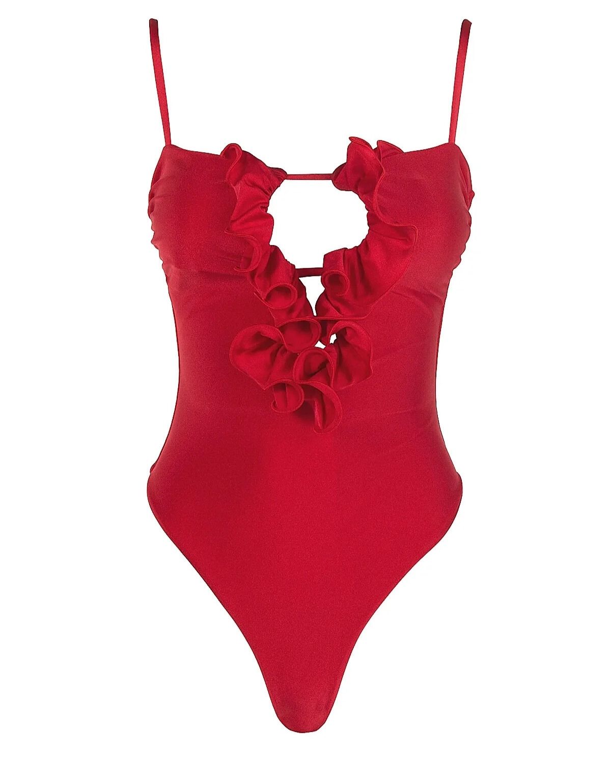 Ruffled swimsuit one piece from the Romantic collection from the Italian brand Isabel Beachwear in red color. Brand swimwear that will not leave any fashionista indifferent.