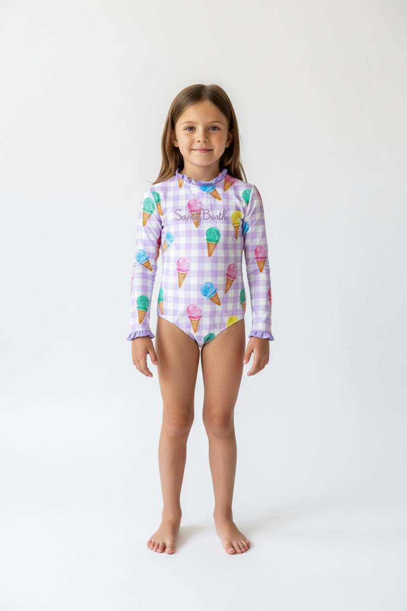 MC2 Saint Barth GIRL Swimsuit One Piece Long Sleeve Ice Cream Embroidery HILA VICHY CREAM 24