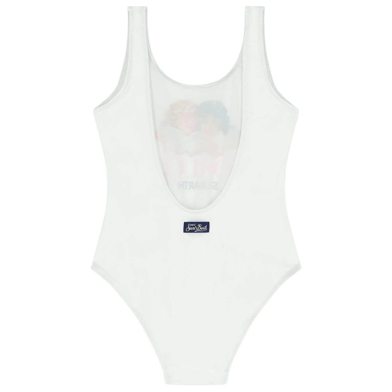 MC2 Saint Barth Girls White Swimsuit One Piece with Angels Print
